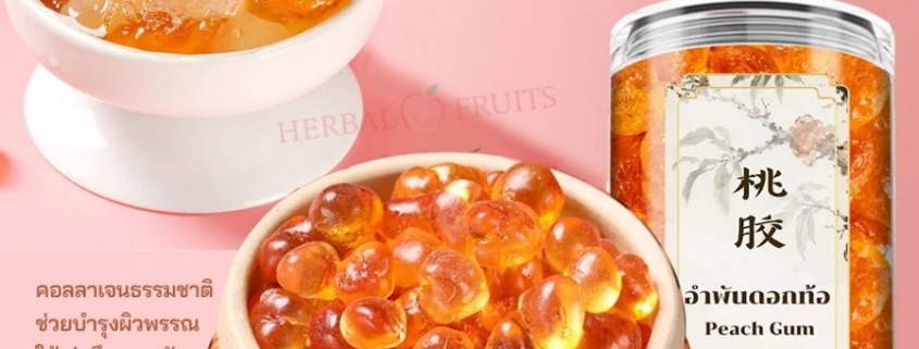 อำพันดอกท้อ ขนมยอดฮิตของสาวจีนที่เค้าทานกันมานาน! ตัวนี้เป็นคอลลาเจนธรรมชาติ ได้จากยางของต้นพีช (ต้นท้อ) ที่จับตัวเป็นผลึกใสๆ สีอำพันสวยๆ เก็บเกี่ยวในช่วงฤดูใบไม้ผลิ ต้มแล้วเนื้อนุ่มลื่น คล้ายวุ้นรังนก รสหวานละมุน กินง่าย