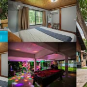 พูลวิลล่ากาญจนบุรี เอราวัณ ติดกับแม่น้ำถูกออกแบบเป็นบ้าน 2 ชั้น (มีห้องนอนชั้นใต้ดิน 1 ห้อง) ทั้งหมด 4 ห้อง คือห้องนอนที่ 1-3 ห้องนอนอยู่ในตัวบ้านใหญ่ 2 ชั้น และห้องนอนที่ 4 ห้องนอนอยู่ชั้นใต้ดิน ติดริมแม่น้ำ ห้องน้ำจะมีอ่าง Jacuzzi ทุกห้องมีห้องน้ำส่วนตัว เข้าพักได้ไม่เกิน 8-10 ท่าน ที่พักไม่มีคาราโอเกะ สามารถเสียงดังได้ถึง 4 ทุ่ม มีครัวด้านนอกตัวบ้าน จาน ช้อน ตู้เย็น ไมโครเวฟ เตาปิ้ง BBQ ขนาดใหญ่ ถังน้ำแข็ง ครบครัน มีสระว่ายน้ำกลางแจ้ง พร้อมชมวิวภูเขาแม่น้ำ นอกจากนี้ยังมีกิจกรรมแพเปียกอีกด้วยสามารถติดต่อทางที่พักที่ได้เลยค่ะ